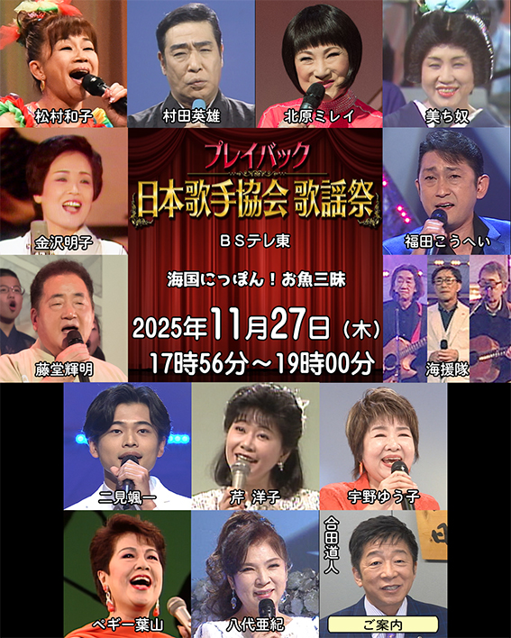 過去に収録した歌謡祭、歌の祭典の名場面をお届けする「プレイバック 日本歌手協会」をBSテレ東で放送中です。