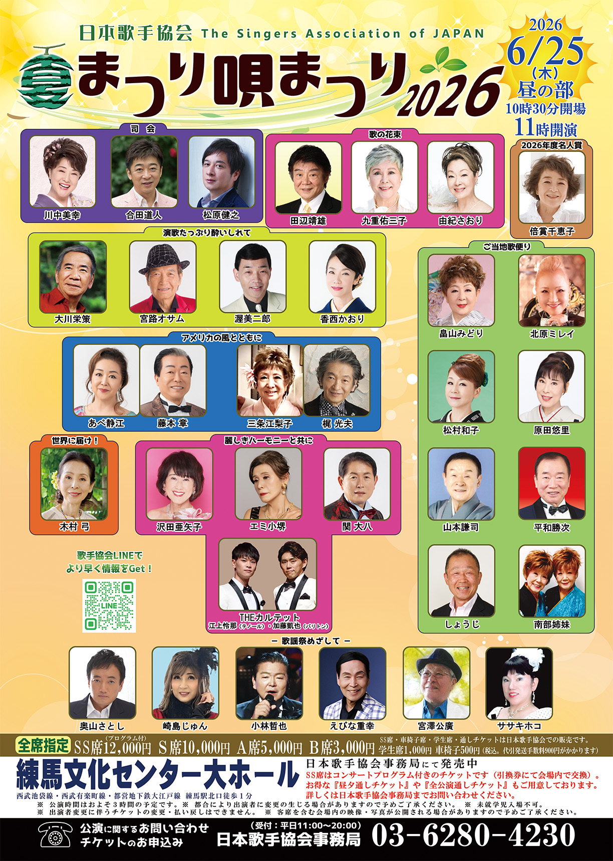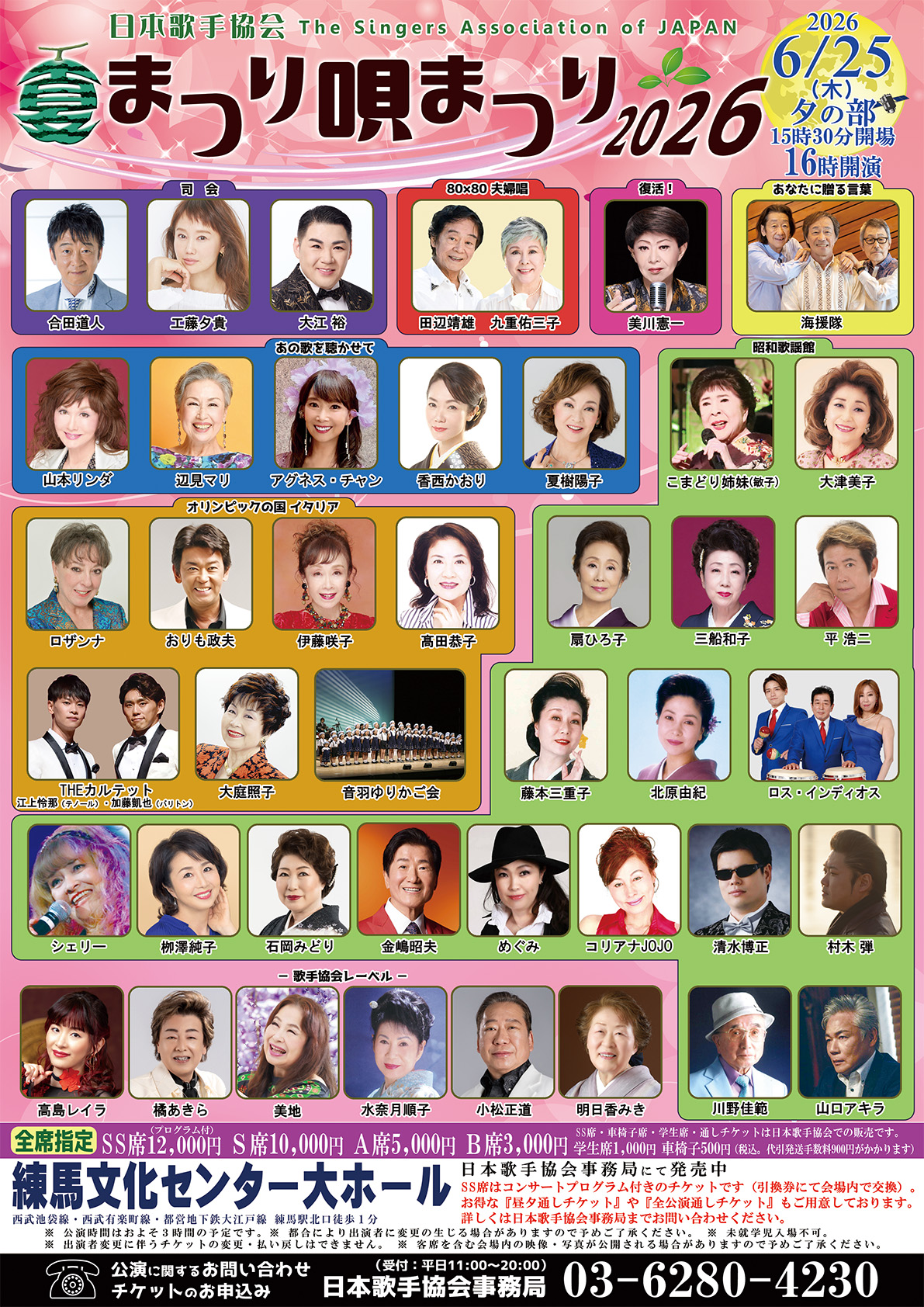 | 問合せ | 日本歌手協会事務局 03-6280-4230 (平日11時〜20時)