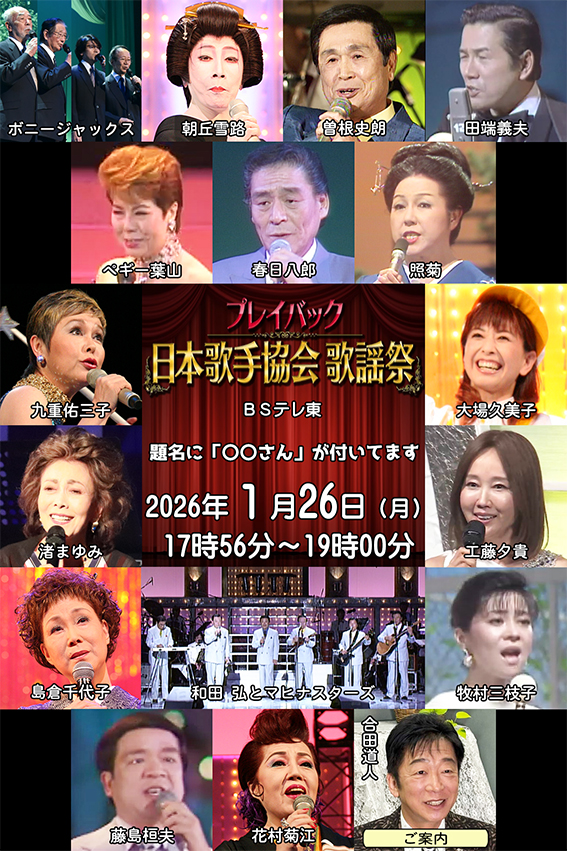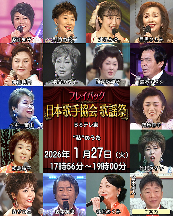 「お知らせ」ページを更新しました。(2026年1月27日更新)BSテレ東「プレイバック日本歌手協会」放送中