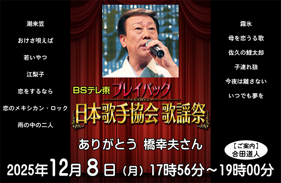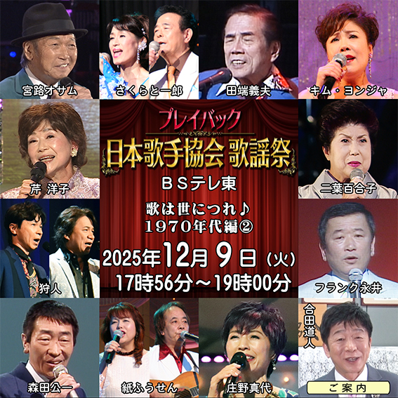 過去に収録した歌謡祭、歌の祭典の名場面をお届けする「プレイバック 日本歌手協会」をBSテレ東で放送中です。