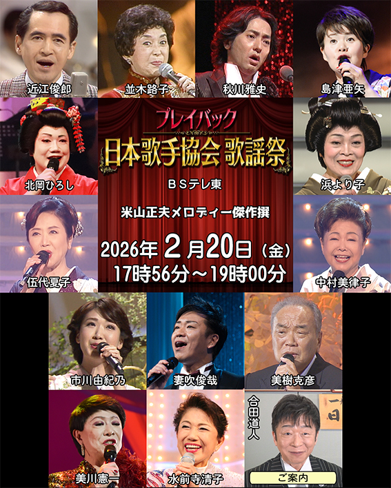 「お知らせ」ページを更新しました。(2026年1月27日更新)BSテレ東「プレイバック日本歌手協会」放送中