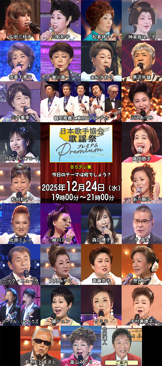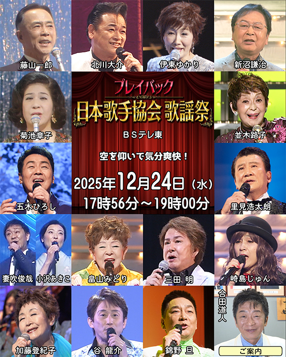 過去に収録した歌謡祭、歌の祭典の名場面をお届けする「プレイバック 日本歌手協会」をBSテレ東で放送中です。
