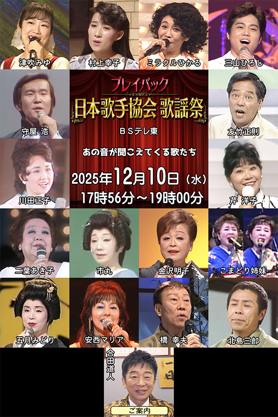 過去に収録した歌謡祭、歌の祭典の名場面をお届けする「プレイバック 日本歌手協会」をBSテレ東で放送中です。