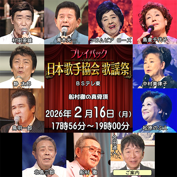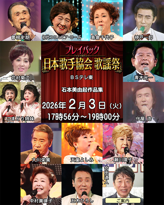 「お知らせ」ページを更新しました。(2026年1月27日更新)BSテレ東「プレイバック日本歌手協会」放送中