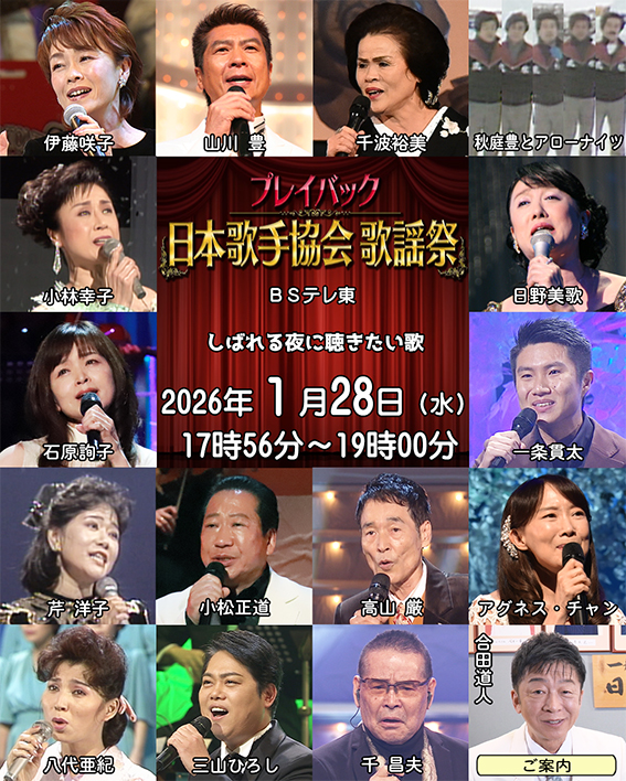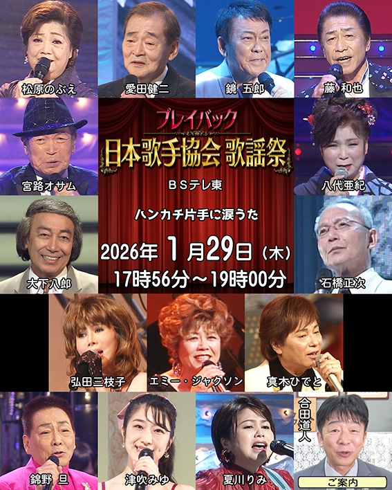 「お知らせ」ページを更新しました。(2026年1月27日更新)BSテレ東「プレイバック日本歌手協会」放送中